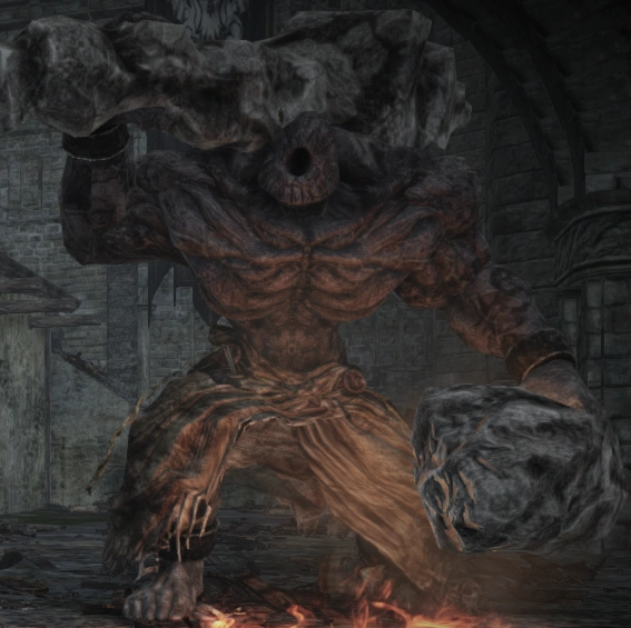 Великий воин гигантов — этот противник орудует двумя большими дубинами. Радиус атаки огромный, урон тоже, заблокировать атаку крайне сложно.