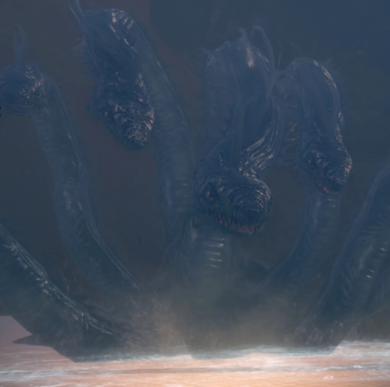 Гидра Озера Золы ныряет под воду, а потом взлетает через берег, попутно бомбардируя под собой водяными потоками из всех голов. Лучше отбежать в сторону от траектории полета.
