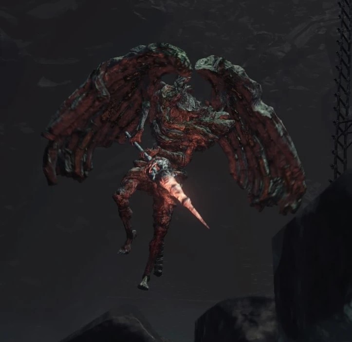 - Довольно медлителен, примерно с третью здоровья начинает блокировать удары крылом, которое служит вместо щита, блокируя около 40% урона. Его также можно пнуть, пробив защиту, а после этого даже нанести рипост, но учтите, что данный приём возможен только против горгулий на крыше Великого архива.
