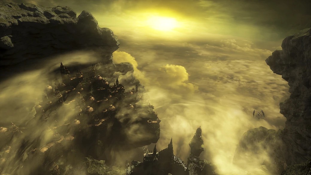 Отдельно стоит отметить локацию после костра «Покои Филианоры». Мы попадаем в нее, разрушив скорлупу в руках у принцессы своим прикосновением. Перед глазами предстает огромная, покрытая пеплом равнина, с торчащими обломками зданий, в которых угадываются шпили Города за стеной. В центре расположена каменная площадка с тронами владык пигмеев. На горизонте можно разглядеть замок Лотрика и Анор Лондо. Большая часть локации служит в качестве арены для битвы с финальным боссом дополнения — Рыцарем-рабом Гаэлем.
