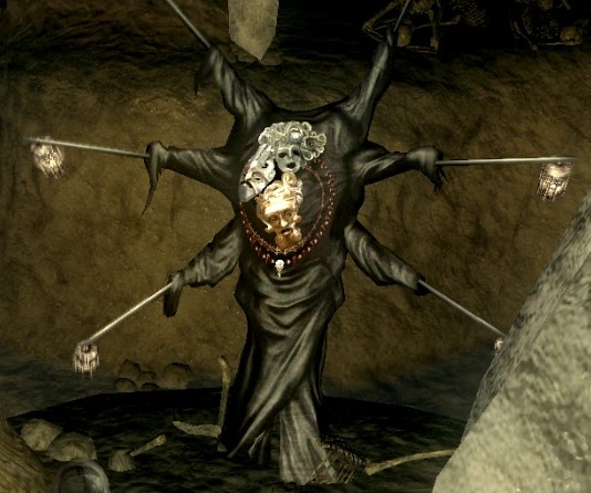 - Из описания масок и Резного щита можно предположить, что они и являются членами культа, которые украли силу настоящего повелителя — Нито.