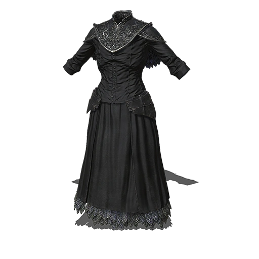 1 часть = Это абсолютно черное платье — деталь одеяния трех настоятельниц Черной церкви Лондора. Оно похоже на траурное платье.|2 часть = Девы первозмеев известны как основательницы Черной церкви, обещавшей опустошенным спасение.